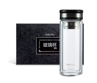 得力双层玻璃杯 茶水杯口杯(透明)320ml直身杯车载杯日常商务杯盒装。 得力8988双层玻璃杯(透明)320ml 日常水杯