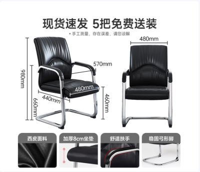 首页 / 办公家具 / 办公椅 / 其他椅凳 / 中伟(ZHONGWEI)电脑椅会议椅家用弓形脚办公椅子洽谈椅会客椅