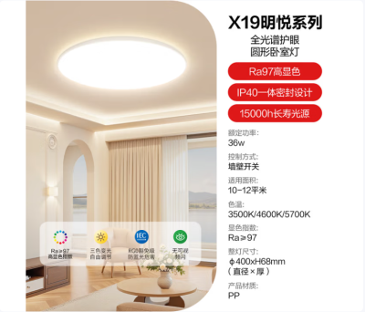 首页 / 办公家具 / 灯具 / 室内照明灯具 / 公牛客厅吸顶灯客厅主灯2025新款灯具led客厅灯超亮客厅大灯全屋 36W 12㎡内适用 2500lm 【圆形卧室灯】-防蚊虫/全光谱