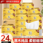 清风原木纯品金装抽纸3层130抽24包餐巾纸卫生纸巾整箱家用实惠
