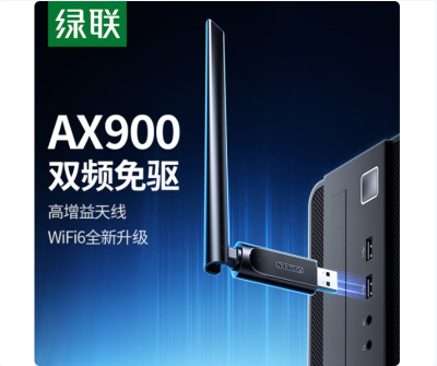 首页 / 办公自动化设备 / 计算机网络设备 / 无线网卡 / 绿联USB无线网卡WiFi6免驱 AX900双频5G 台式机专用WiFi接收器 电脑笔记本无线网接收器外置高增益天线