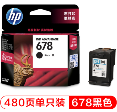 惠普(HP)CZ107AA 678黑色墨盒 适用HP Deskjet1018/2515/1518/4648/3515/2548/2648/3548/4518