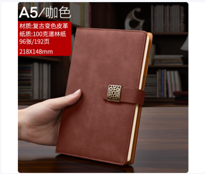 木雷 商务笔记本本子文具定制加厚带扣礼盒套装带笔磁扣可印logo记事本办公用品开会议工作日记本记录本 601-A5咖色