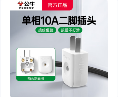 首页 / 电器设备 / 生产辅助用电器 / 电源插座和转换器 / 公牛(BULL)插头二三脚 三孔电源电线3脚插头不带线自接线 三角三头插头 2脚自接线可拆卸/更换安全电器插头 【2脚插头10A】 2500W 1只装