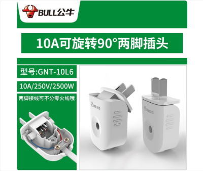 公牛(BULL)插头二三脚 三孔电源电线3脚插头不带线自接线 三角三头插头 2脚自接线可拆卸/更换安全电器插头 【2脚可调插头10A】 2500W 1只装