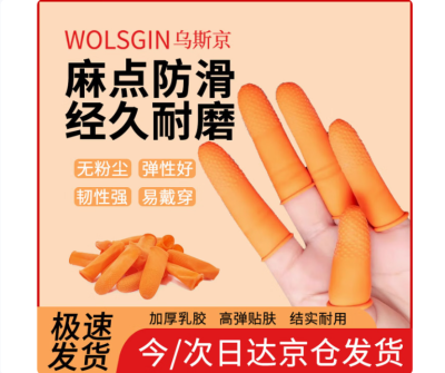 乌斯京麻点橡胶防滑手指套耐磨加厚乳胶防护耐磨指套工业劳保车间防护 橙色麻点防滑指套100只 中码/M