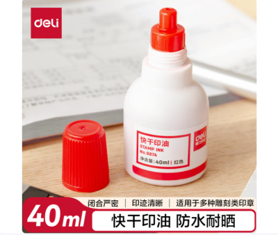 得力(deli)40ml快干清洁印油 财务印章印泥印油 公章印油 红色9874