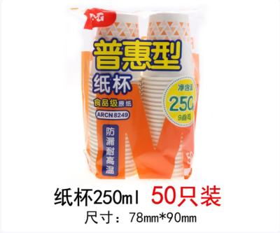 晨光纸杯250ml一次性杯子商务办公室家用生活用品纸质茶水杯7盎司加厚饮水杯250毫升采购 N8249纸杯50只装(250ml)