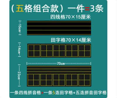 山头林村田字格磁力黑板贴拼音四线三格磁性黑板条教师教学软磁铁教具 3条70厘米四线格+5连田字格+5连拼音田字格