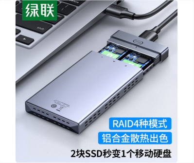 首页 / 办公自动化设备 / 存储设备 / 移动存储设备 / 绿联(UGREEN)M.2 SATA/NGFF移动硬盘盒 读取ssd扩展m2移动固态转接卡适用于笔记本电脑 Type-C/USB3.1接口 M.2SATA协议【双盘-4种RAID】70534