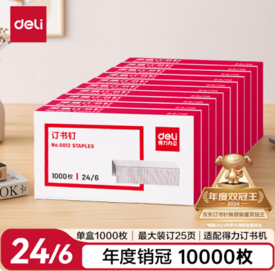 得力(deli)【热门商品】24/6高强度订书钉 12#订书针 1000枚/盒