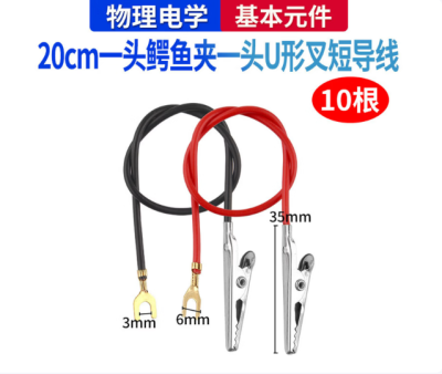 鳄鱼夹导线学生初中物理电学实验器材 (20cm)鳄鱼夹+U叉小导线/1根