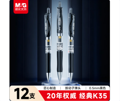 首页 / 办公耗材 / 文教用品 /  / 晨光(M&G) K35 黑色 0.5中性笔 按动笔 签字笔12支/盒