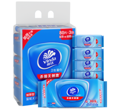 维达(Vinda)湿巾湿纸巾杀菌湿巾纸80片 *3包 3提/箱 单位:箱