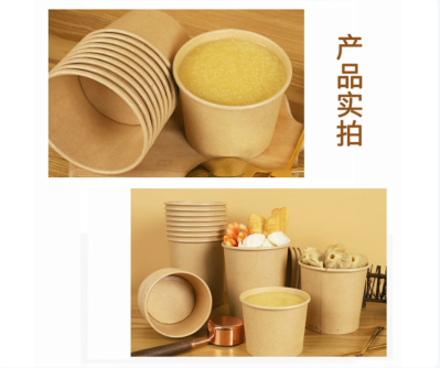 禾义(HEYI) 牛皮纸盒 汤杯饭盒圆形餐盒带盖