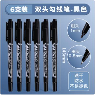 首页 / 办公耗材 / 文教用品 /  / 晨光(M&G) 记号笔勾线笔小双头粗细油性美术专用描线防水不掉色持久速干学生勾线笔会议笔马克笔 【粗细双头】黑色6支 单位:盒