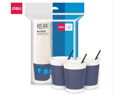 得力(deli) 19212 蓝色 一次性杯子 竹浆纸杯 水杯 咖啡杯 配搅拌棒 280ml 50只装
