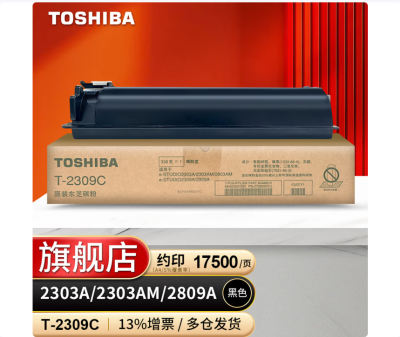 首页 / 办公耗材 / 硒鼓、粉盒 / 粉盒 / 东芝(TOSHIBA) T-2309C 原装高容碳粉墨盒墨粉盒 适用2303/2809/2309 约18000页