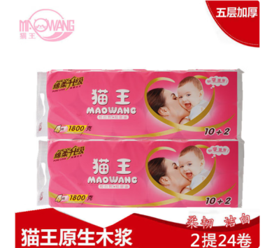 首页 / 办公耗材 / 清洁用品 / 卫生用纸制品 / “CAT KING(mao wang)/猫王”MR-06 卫生纸 单提装(绵柔1800克卷纸厕所纸手纸卷筒纸105mm*136mm四层MR06 12卷/提)