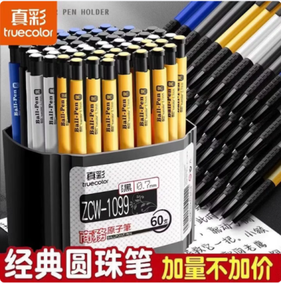 首页 / 办公耗材 / 文教用品 /  / 真彩(TRUECOLOR)按动式圆珠笔商务办公用学生蓝红黑色经典子弹头速干油笔批发 真彩正品:1支散装