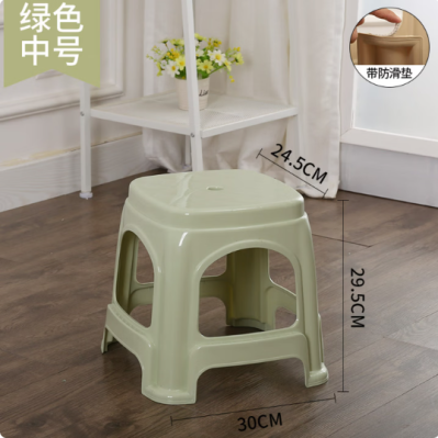 加厚塑料凳子家用小凳子简约胶凳子客厅餐桌椅子茶几凳防滑小板凳 中号无盖-绿色 高29.5cm