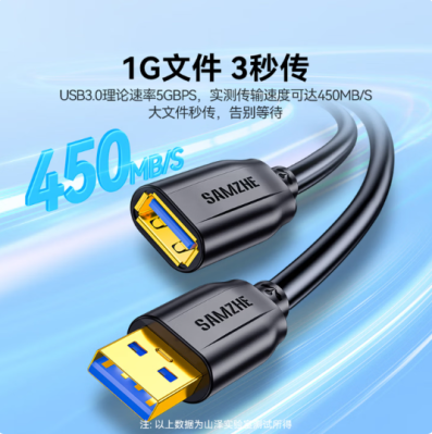 山泽USB3.0延长线1.5米公对母电视u盘硬盘鼠标键盘扩展线电脑数据连接加长线打印机分线器转接线UK-015