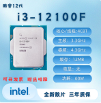首页 / 办公自动化设备 / 计算机配件 / 英特尔(Intel)酷睿12代CPUi3/i5/i9游戏办公台式机AI处理器盒装正品散片F/KF/K电竞游戏DIY超频 i3-12100F 全新散片