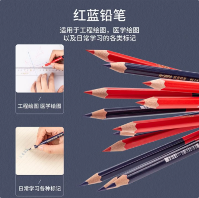 首页 / 办公耗材 / 文教用品 /  / 得力(deli)58899双头红蓝铅笔1支装图稿铅笔标记铅笔工程医学绘画铅笔 58899(红蓝双色)
