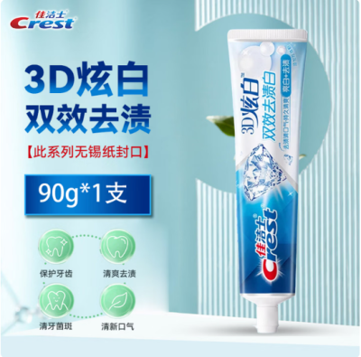 “Crest/佳洁士”3D炫白90g牙膏1支装(双效去渍白美白去黄去牙渍防渍含氟90克新老包装混发)