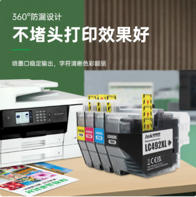 首页 / 办公耗材 / 硒鼓、粉盒 / 喷墨盒 / 绿格适用兄弟MCF-J2340DW J3540DW J3940DW LC492打印机墨水墨盒 LC492XL 四色墨盒套装-7500页