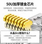 绿联六类网线水晶头 6类千兆网络接头 50U镀金工程级RJ45电脑网线连接器CAT6非屏蔽水晶头 单位:1个