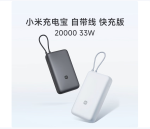 小米(MI)【3C认证】充电宝自带线快充版20000 33W浅灰色可上飞机/火车可充手机平板笔记本户外储能电源