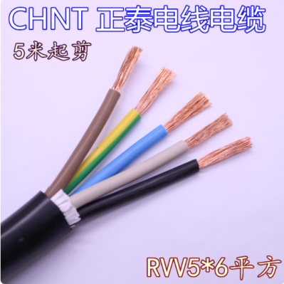 正泰(CHNT)电线电缆RVV5*6平方软电线护套线铜芯线国标五芯线空调电源线 1米
