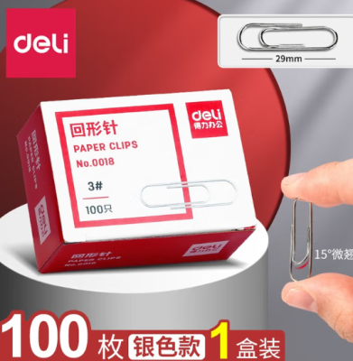 得力(deli) 金属回形针办公加厚电镀表层曲别针彩色回形针学生手工文具彩色工字钉大头针组合三针一钉 【金属回形针】1盒(1000枚29mm)