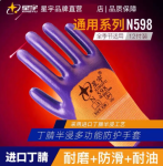 星宇劳保手套n518正品浸胶丁晴防滑耐磨工地干活橡胶防水手套 12双紫桔色【升级手背加强款】均码