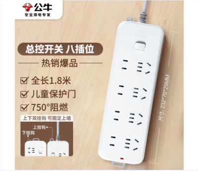 首页 / 办公自动化设备 / 办公设备 / 办公设备零部件 / 公牛(BULL)插座/插线板/插排/排插/接线板/宿舍家用桌面拖线板 3C认证 8位总控开关全长1.8米 GN-B3440