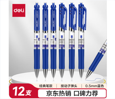 首页 / 办公耗材 / 文教用品 / 文具 / 得力(deli)S01中性笔签字笔 0.5mm子弹头经典办公按动笔水笔 蓝色 12支/盒 S01