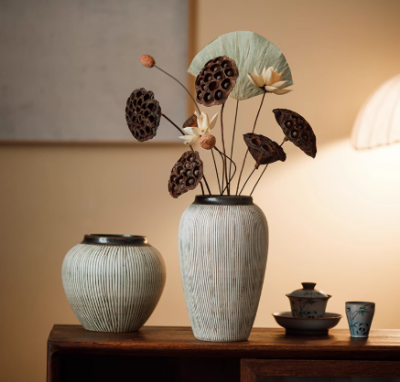 首页 / 办公家具 / 家具装饰材料 / 新中式复古木纹花瓶家居花器电视柜台面插花器文艺样板间家居摆件