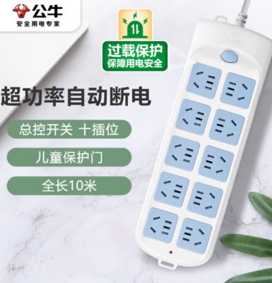 公牛(BULL)插座/插线板/插排/排插/接线板/拖线板 10位总控全长10米超功率保护 GN-605