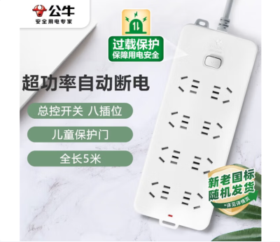 首页 / 电器设备 / 生产辅助用电器 / 电源插座和转换器 / 公牛(BULL)插座/插线板/插排/排插/接线板/拖线板 8位总控全长5米超功率保护 GN-217