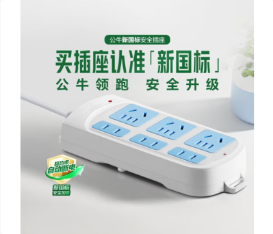 公牛(BULL)安全插座插排转换器 新国标超功率自动断电保护接线板拖线板 基础蓝白款 【六位插排|3米|新国标】GN-102