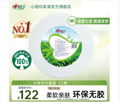 首页 / 办公耗材 / 清洁用品 / 卫生用纸制品 / 心相印ZB010大盘纸3层188米卷纸卫生纸中厕所家用商务实惠3卷/件