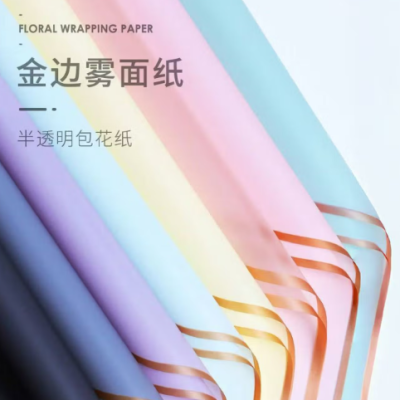 首页 / 办公家具 / 家具装饰材料 / 金边果冻膜雾面纸鲜花包装材料花束包装纸高级感防水包花资材