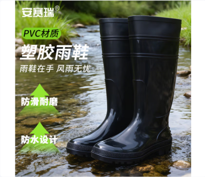 首页 / 被服装具 / 工作服装、鞋 / 工作鞋、靴 / 安赛瑞 高筒雨鞋 黑色 PVC塑胶雨鞋雨靴 户外防水防滑雨靴 应急救灾雨鞋 45码 13817