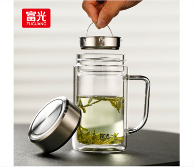 富光双层玻璃杯支持团购定制泡茶杯办公杯带把 大容量男女水杯子580ML